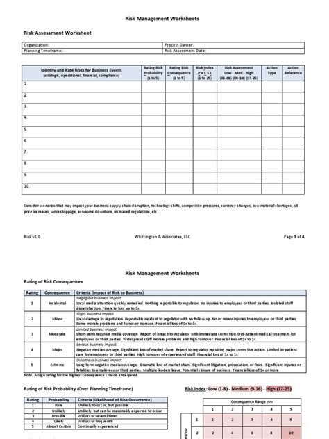 Risk Management Work Sheet - All the risk management activities on this page help you and your team manage and alleviate project and program risks. This document provides templates for assessing and managing risks. Risk management matrix and worksheet. To support your risk management planning, this page offers multiple templates that are free to download. These worksheets contain a risk sheet and its accompanying graph.